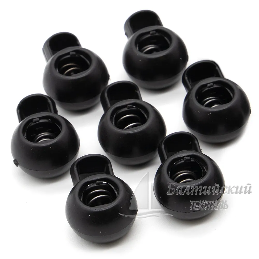Фиксатор изготовлен из прочного, безопасного пластика черного цвета. Фиксатор "шар" позволяет регулировать длину и зафиксировать натяжение шнура или тесьмы, используется при шитье рюкзаков, одежды для спорта, отдыха, верхней или детской одежды.